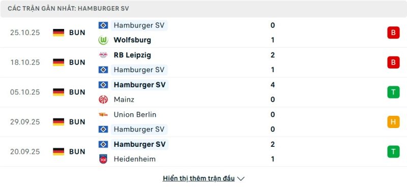 Phong độ của Hamburger SV