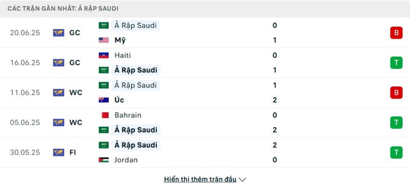 Thống kê phong độ gần đây Ả Rập Xê Út vs Trinidad & Tobago