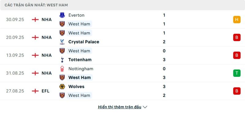 Phong độ của West Ham United