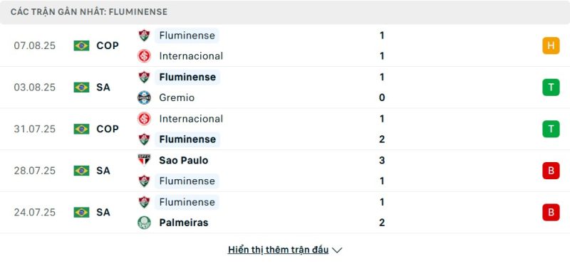 Bên kia chiến tuyến, Fluminense vừa có hai chiến thắng liên tiếp trước Internacional và Gremio, cho thấy dấu hiệu khởi sắc sau chuỗi 5 trận thua liên tiếp. Trận hòa 1-1 với Internacional tại cúp quốc gia là minh chứng cho bản lĩnh của họ. Tuy nhiên, việc thua đậm trước Sao Paulo và Palmeiras trước đó cho thấy sự thiếu ổn định nơi hàng thủ. Dù hàng công vẫn duy trì được hiệu suất ghi bàn, Fluminense cần cải thiện sự tập trung để cạnh tranh sòng phẳng trong những trận đấu then chốt.