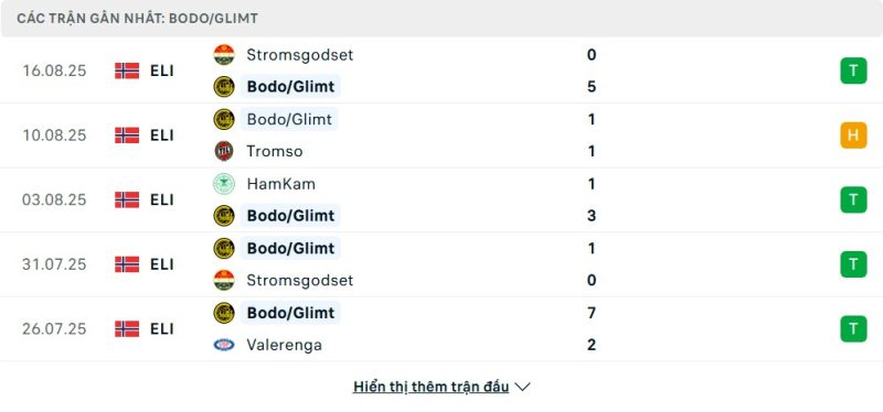 5 trận gần nhất của Bodø/Glimt: W-D-W-W-W