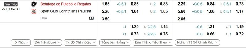 Bảng Tỷ lệ kèo bóng đá Botafogo vs Corinthians