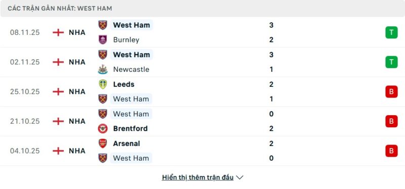 Phong độ của West Ham United