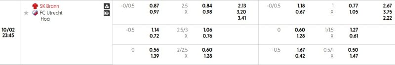 Bảng Tỷ lệ kèo bóng đá Brann vs Utrecht