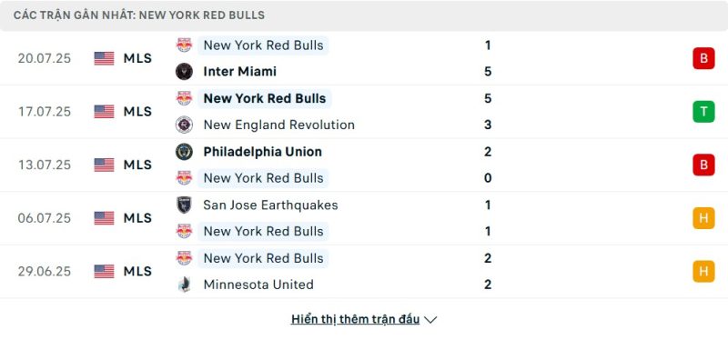 Bên kia chiến tuyến, New York Red Bulls lại đang có dấu hiệu hụt hơi. 6 trận gần đây, họ chỉ có 1 chiến thắng nhưng lại nhận đến 2 thất bại nặng nề, trong đó có trận thua 1-5 trước Inter Miami. Dẫu vậy, họ vẫn giữ vị trí thứ 9 tại miền Đông với 33 điểm. Hàng công có lúc thăng hoa, nhưng hàng thủ thường xuyên mắc lỗi khiến đội bóng này không thể duy trì chuỗi trận ổn định.