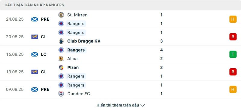 Bên kia chiến tuyến, Rangers đang trải qua một giai đoạn đầy biến động. Thất bại 1-3 ngay trên sân nhà Ibrox đã đẩy họ vào thế chân tường. Phong độ của đội bóng Scotland ở giải quốc nội cũng không thực sự thuyết phục khi họ có một chuỗi trận hòa đáng thất vọng. Dù đã có những chiến thắng ở cúp quốc gia và các vòng loại trước, sự thiếu ổn định, đặc biệt là ở hàng phòng ngự, đang là bài toán nan giải với HLV trưởng. Chuyến hành quân đến Bỉ được dự báo là “lành ít dữ nhiều” cho Rangers.