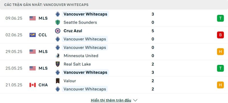 • Phong độ của Vancouver Whitecaps