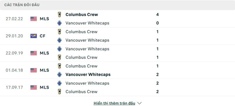 Thống kê cho thấy 5/6 lần đối đầu gần nhất giữa hai đội tại MLS đều có trên 2 bàn thắng được ghi. Những cuộc chạm trán giữa Columbus Crew và Vancouver Whitecaps thường diễn ra rất mở, với nhịp độ cao và nhiều cơ hội được tạo ra. Xét về đối đầu trực tiếp, đôi bên không quá chênh lệch về kết quả trong quá khứ. Tuy nhiên, phong độ hiện tại của Vancouver rõ ràng tạo ra cảm giác họ đang ở một đẳng cấp cao hơn, nhất là khi Columbus Crew đang có dấu hiệu rệu rã về mặt tinh thần.