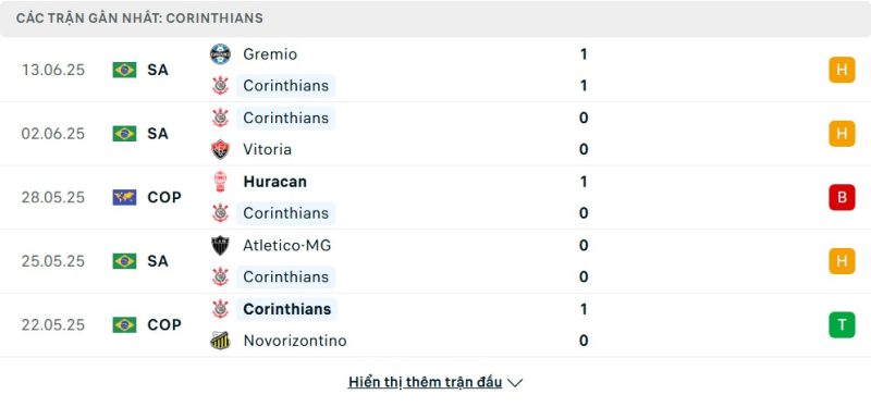 Corinthians Corinthians bước vào vòng 13 với chuỗi phong độ không mấy thuyết phục. Đoàn quân của HLV Dorival Júnior đã hòa cả ba trận gần nhất tại Serie A mà chỉ ghi được 1 bàn thắng, trong đó có những trận hòa không bàn trước Vitória và Atlético Mineiro. Dù không thủng lưới nhiều, hàng công của Corinthians đang gặp vấn đề trong việc triển khai tấn công hiệu quả, ngay cả khi có sự hiện diện của những cái tên như Héctor Hernández hay Memphis Depay. Trên sân nhà, đội bóng thành São Paulo cũng không còn giữ được sự áp đảo như trước, khiến người hâm mộ dần mất kiên nhẫn.
