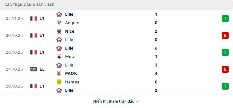 Bên kia chiến tuyến, Lille hiện đang có phong độ khá tích cực dù chưa thật sự bứt phá. Họ sở hữu 6 điểm sau 3 lượt đấu, đứng trong nhóm giữa của bảng xếp hạng Europa League. Tại Ligue 1, Lille duy trì sự cạnh tranh quyết liệt khi thắng Metz, Angers và Nantes, chỉ để thua sát nút trước Nice. Dưới sự dẫn dắt của HLV giàu kinh nghiệm, đội bóng Pháp vẫn giữ được lối chơi kỷ luật, linh hoạt giữa tấn công và phòng ngự, hứa hẹn là thử thách đáng gờm cho bất kỳ đối thủ nào.