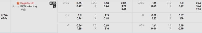 Bảng Tỷ lệ kèo bóng đá Degerfors IF vs IFK Norrköping