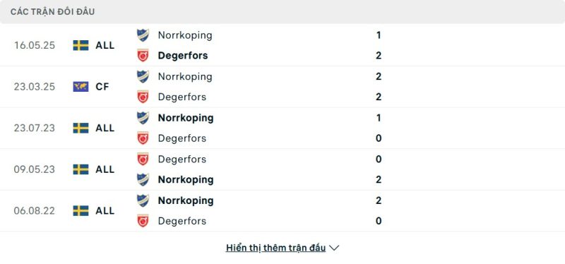 Thành tích đối đầu của Degerfors IF vs IFK Norrköping