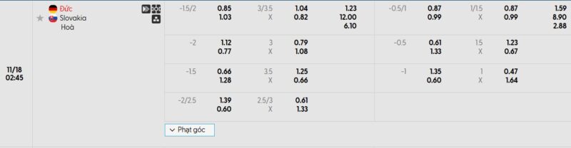 Bảng Tỷ lệ kèo bóng đá Đức vs Slovakia