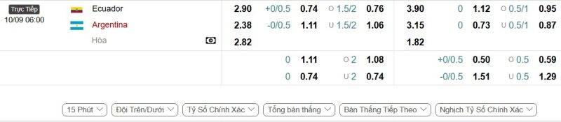 Bảng Tỷ lệ kèo bóng đá Ecuador vs Argentina