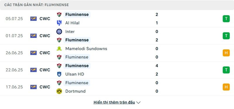 5 trận gần nhất của Fluminense: W-W-D-W-D