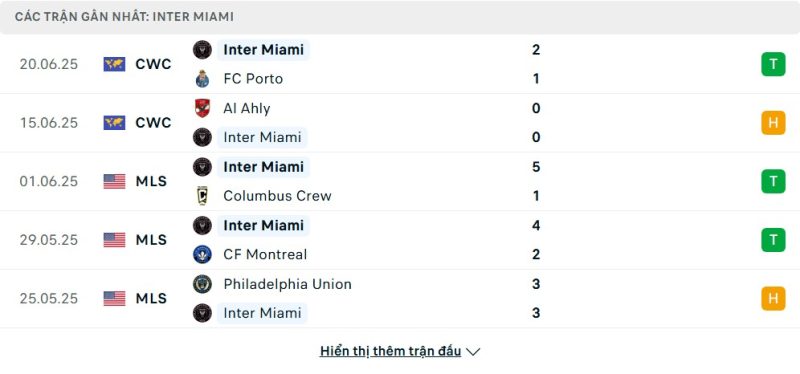 • Phong độ của Inter Miami CF