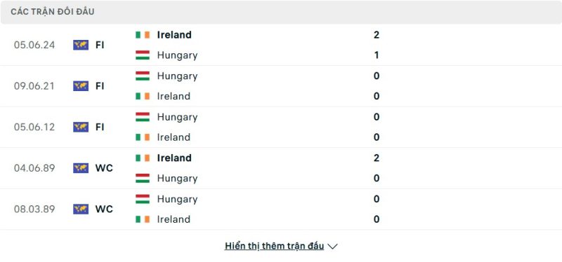 Bảng Tỷ lệ kèo bóng đá Ireland vs Hungary