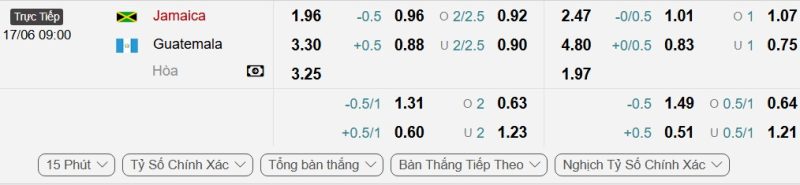Bảng Tỷ lệ kèo bóng đá Jamaica vs Guatemala