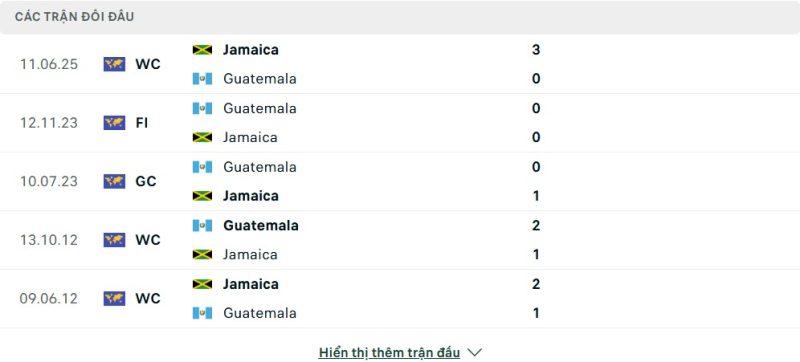 Thành tích đối đầu của Jamaica vs Guatemala