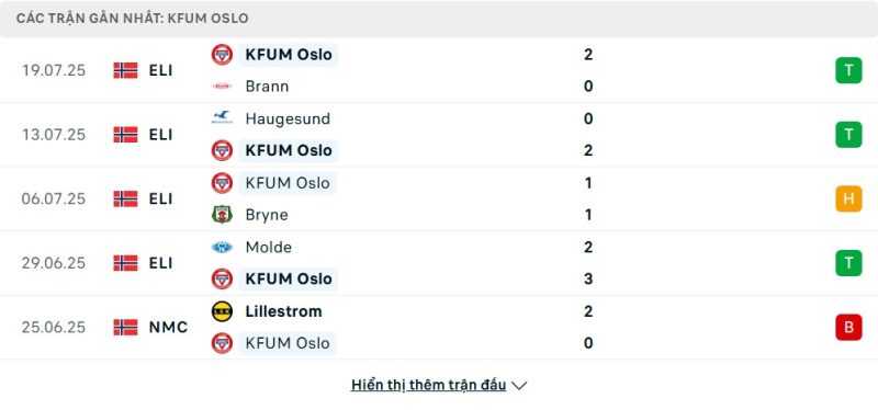 Thống kê phong độ gần đây Kristiansund vs KFUM