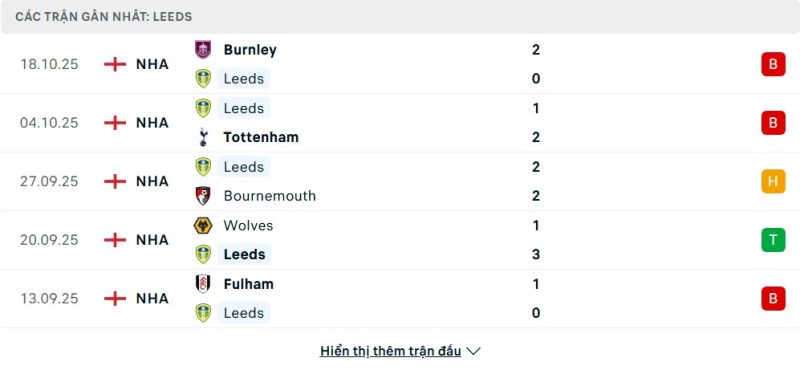 - Phong độ của Leeds United