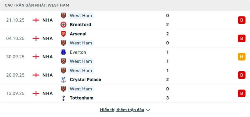 - Phong độ của West Ham United