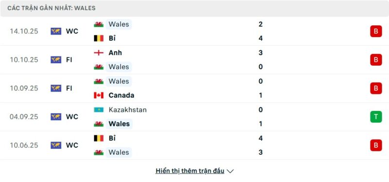 5 trận gần nhất của Xứ Wales: L-L-L-W-L