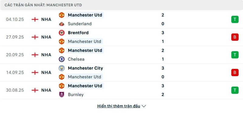 Bên kia chiến tuyến, Manchester United lại đang thể hiện một bộ mặt cực kỳ thất thường. Phong độ của “Quỷ đỏ” trong thời gian gần đây là một chuỗi thắng thua xen kẽ đầy khó đoán. Họ có thể chơi bùng nổ để đánh bại một đối thủ mạnh như Chelsea với tỷ số 2-1, nhưng ngay sau đó lại có thể để thua 1-3 trước Brentford. Sự thiếu ổn định này khiến Man Utd trở thành một đối thủ khó lường, có khả năng tạo ra bất ngờ nhưng cũng có thể sụp đổ bất cứ lúc nào.