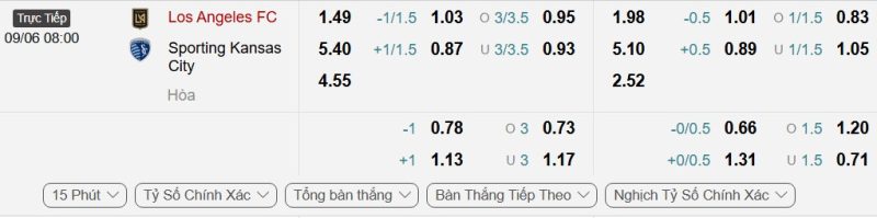 Bảng Tỷ lệ kèo bóng đá Los Angeles FC vs Sporting Kansas City