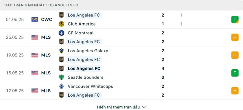 5 trận gần nhất của Los Angeles FC: D-D-D-W-D