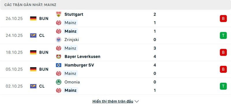 Phong độ của Mainz 05