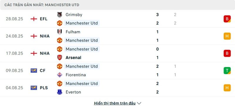 Manchester United đang có một khởi đầu mùa giải đầy thất vọng. Sau hai vòng đấu đầu tiên tại Premier League 2025/26, “Quỷ Đỏ” vẫn chưa biết đến mùi chiến thắng, với một trận hòa và một trận thua. Họ để thua Arsenal với tỷ số tối thiểu và bị Fulham cầm hòa 1-1. Kết quả này khiến đoàn quân của HLV Ruben Amorim rơi xuống vị trí thứ 16 trên bảng xếp hạng, một vị trí đáng báo động. Gần đây nhất, họ còn phải nhận thất bại muối mặt trước Grimsby ở EFL Cup trên chấm luân lưu, một cú sốc lớn đối với người hâm mộ.