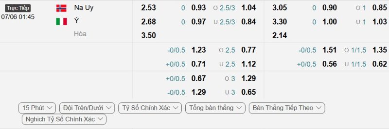 - Kèo tỷ số bóng đá hiệp 1: Na Uy 2-1 Italia