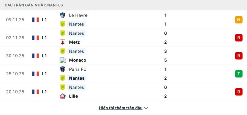 Nantes đang trải qua giai đoạn đầu mùa giải 2025/26 đầy chật vật và áp lực nặng nề. Họ đang đứng ở vị trí thứ 16 trên bảng xếp hạng với chỉ 10 điểm, nằm sát khu vực xuống hạng và buộc phải có điểm để bứt phá. Phong độ gần đây của đội chủ nhà rất thất thường, nổi bật là trận thua đậm Monaco với năm bàn thua hay thất bại trước Metz ngay trên sân nhà. Dù có một chiến thắng trước Paris FC, sự ổn định vẫn là điều xa xỉ với thầy trò huấn luyện viên Luis Castro. Trận đấu này là cơ hội để họ lấy lại niềm tin nơi người hâm mộ.