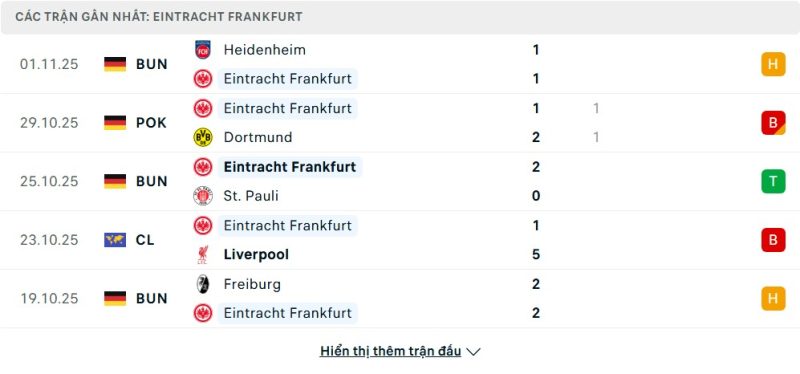 Phong độ của Eintracht Frankfurt