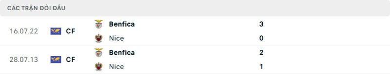 Bảng Tỷ lệ kèo bóng đá Nice vs Benfica
