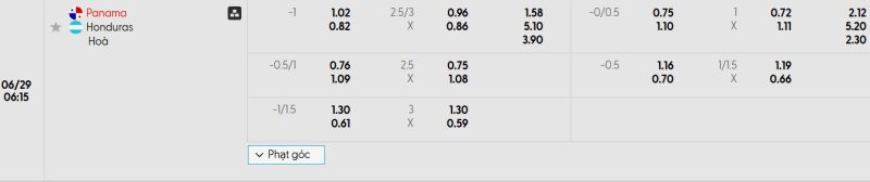 Bảng Tỷ lệ kèo bóng đá Panama vs Honduras