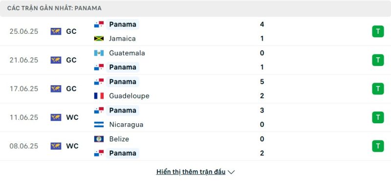 5 trận gần nhất của Panama: W-W-W-W-W