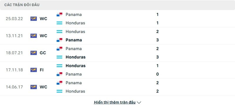 Thành tích đối đầu của Panama vs Honduras