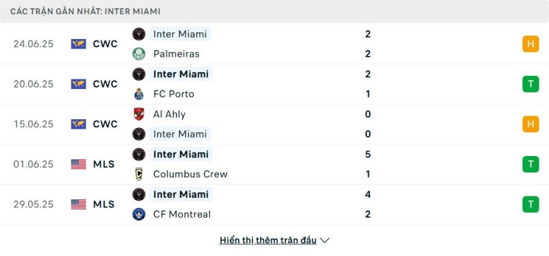 5 trận gần nhất của Inter Miami CF: D-W-D-W-W