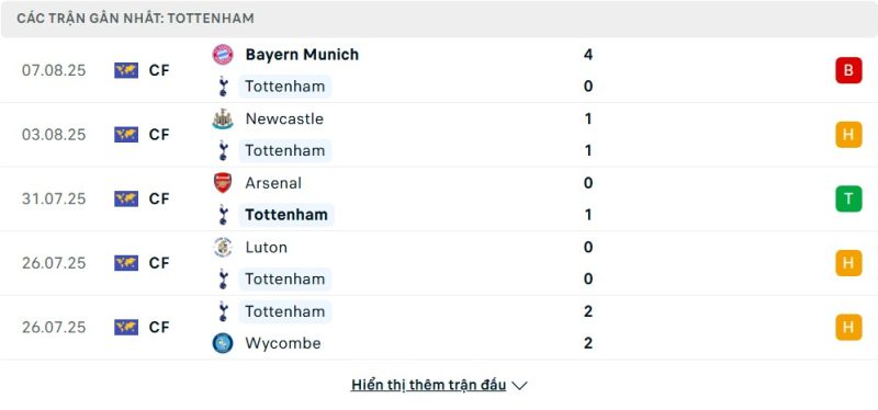 - Phong độ của Tottenham Hotspur