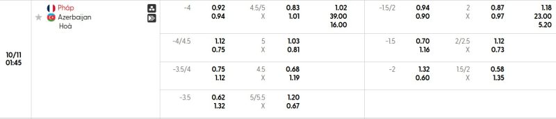 Bảng Tỷ lệ kèo bóng đá Pháp vs Azerbaijan