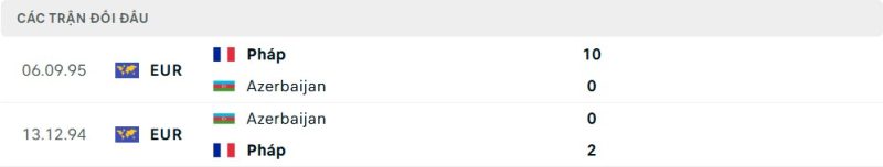 Thành tích đối đầu của Pháp vs Azerbaijan