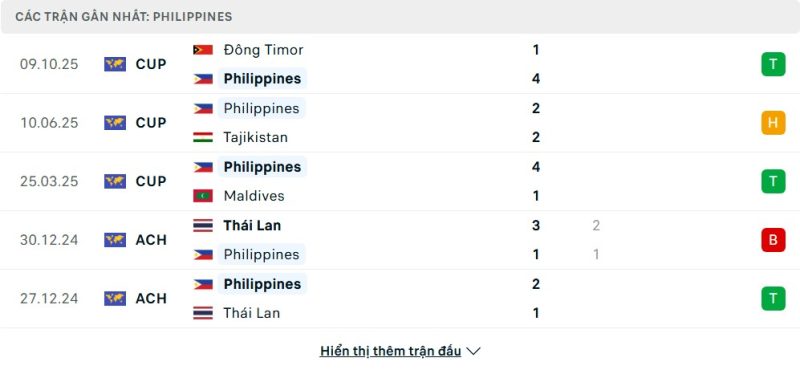 Thống kê phong độ gần đây Philippines vs Timor-Leste