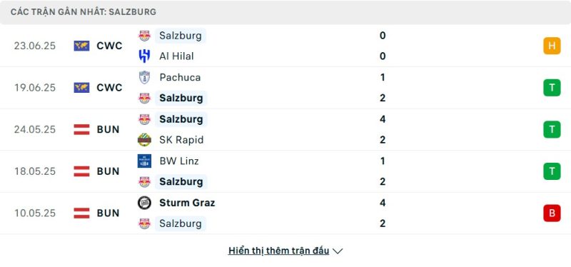 - Kèo châu Á Full Time: Red Bull Salzburg +1.75