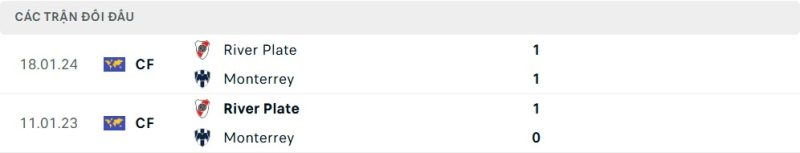 Thành tích đối đầu của River Plate vs CF Monterrey