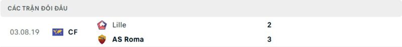 Thành tích đối đầu của Roma vs Lille