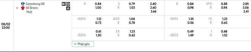 - Kèo tỷ số bóng đá hiệp 1: Sarpsborg 2-1 Brann