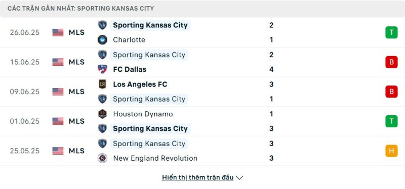 - Phong độ của Sporting Kansas City