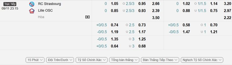 Bảng Tỷ lệ kèo bóng đá Strasbourg vs Lille